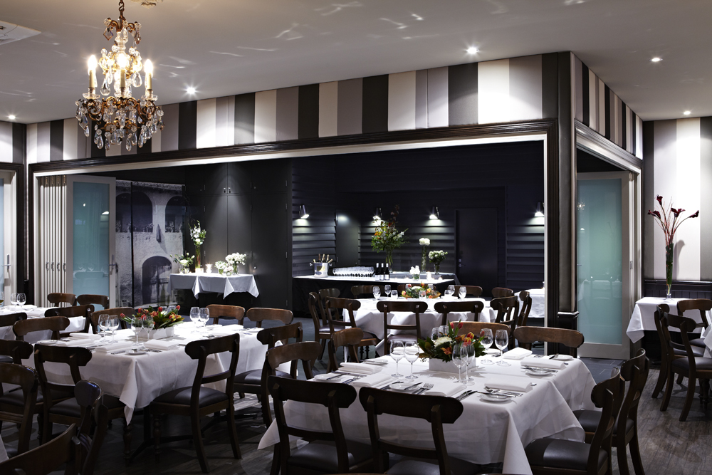The Venetian Room up to 30 peopleLocated at the front of the restaurant, this high-ceilinged intimate space glows with gold, Asian inspired wallpaper. It is the perfect space to impress your clients, family or friends. This space looks onto Brunswick Street and suits the more intimate occasions.